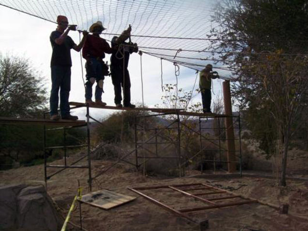 In 2011 I was contracted to work on the creation of the new Sonoran Jaguar Exhibit at The Living Desert in Palm Desert, California. The habitat was themed as an old abandoned mining area. I was responsible for constructing and fabricating all the rockwork facing the jaguar building—designing, bending, shaping, and tying the steel armature, securing the diamond-mesh lath, directing the plaster crew, and troweling the final coat of cement in preparation for texturing. I then carved, textured, and painted the surfaces to simulate the natural boulder formations found throughout the Coachella Valley.